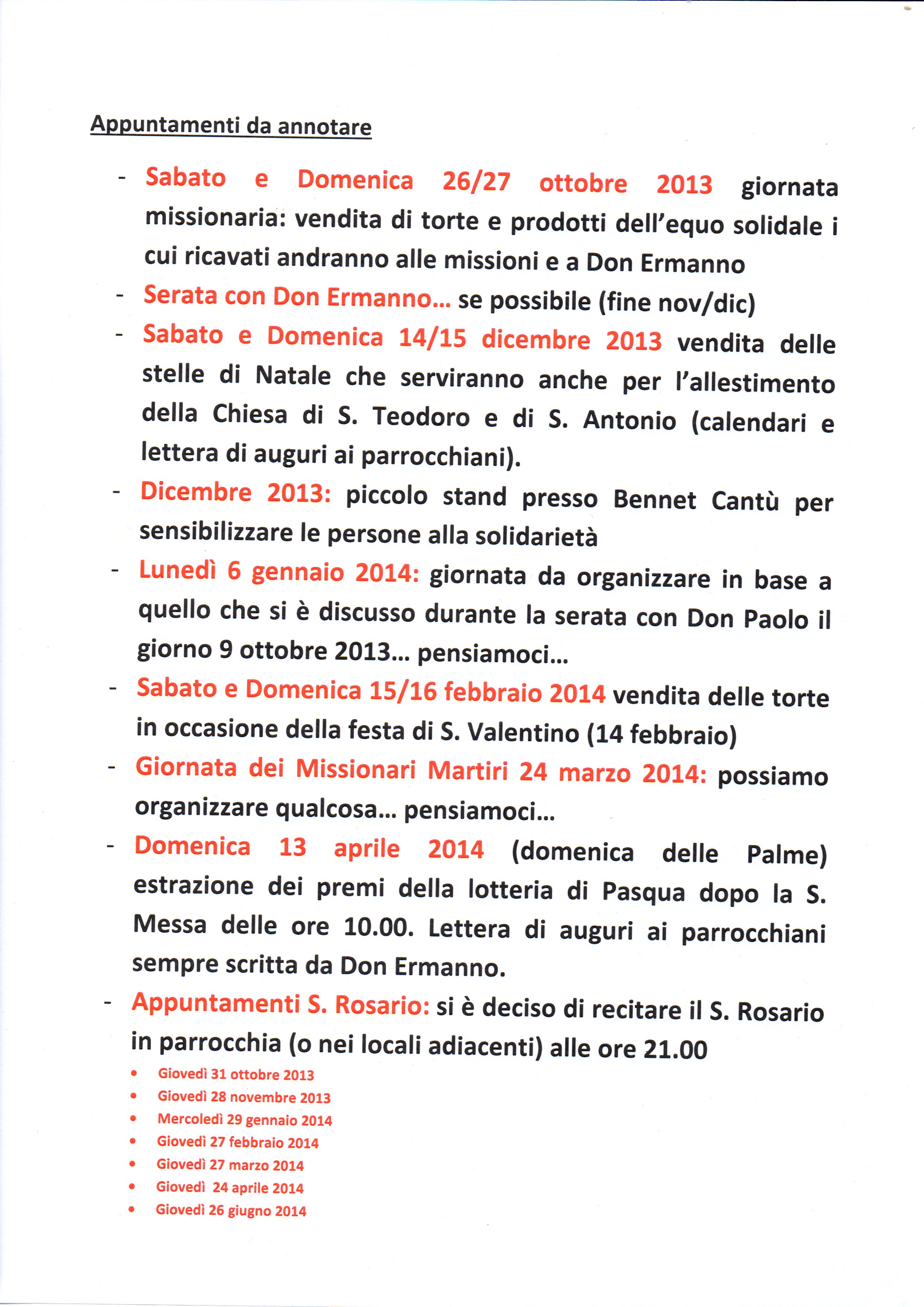 Appuntamenti da annotare